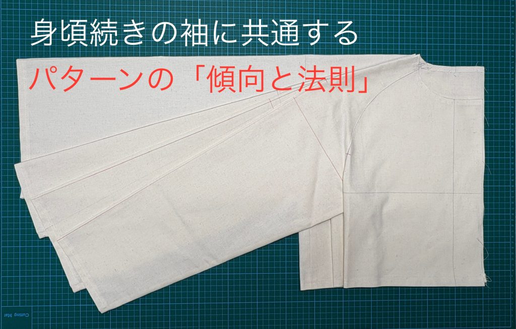 「袖」は一枚袖、二枚袖、ドロップスリーブそして身頃続きの袖と様々なデザイン・表現がありますが、パターンの「傾向と法則」は共通しています。